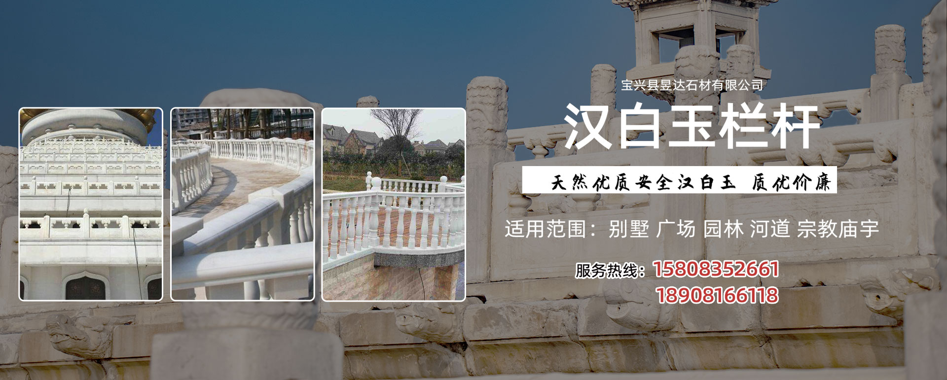 寶興縣昱達石材有限公司于2016年4月在工商局注冊成立,坐落于寶興縣靈關工業集中區柏椿樹漢白玉產業園,廠區占地面積近30畝。雖然公司成立不久,但是我們已經從事石材行業近二十年的時間。在工廠發展壯大的時間里,我們始終為客戶提供好的產品和技術支持、健全的售后服務,近年隨著科學技術的發達,我們也引入了機械設備。我工廠主要經營:漢白玉石料、漢白玉板材、漢白玉欄桿、漢白玉雕塑(動物雕塑、圓林雕塑、城市雕塑、西方人體雕塑)、漢白玉像、漢白玉墓碑、漢白玉石獅、漢白玉花瓶柱;大理石、花崗石荒料購銷。